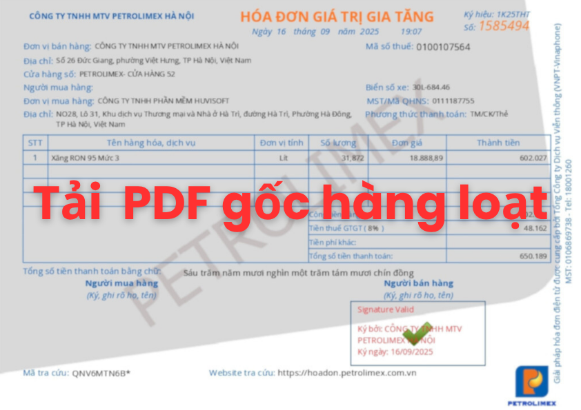 Tự động lấy được link tra cứu và mã tra cứu của hóa đơn