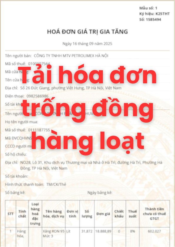 Tải một lần được dữ liệu của VÀI NĂM cho cả 3 loại hóa đơn: có mã, không có mã, và hóa đơn khởi tạo từ máy tính tiền